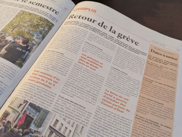 26.11.25 : RTS, 12h45 - Nouvelle grève de la fonction publique, en colère contre le projet de budget (focal. UNIL et crèches)